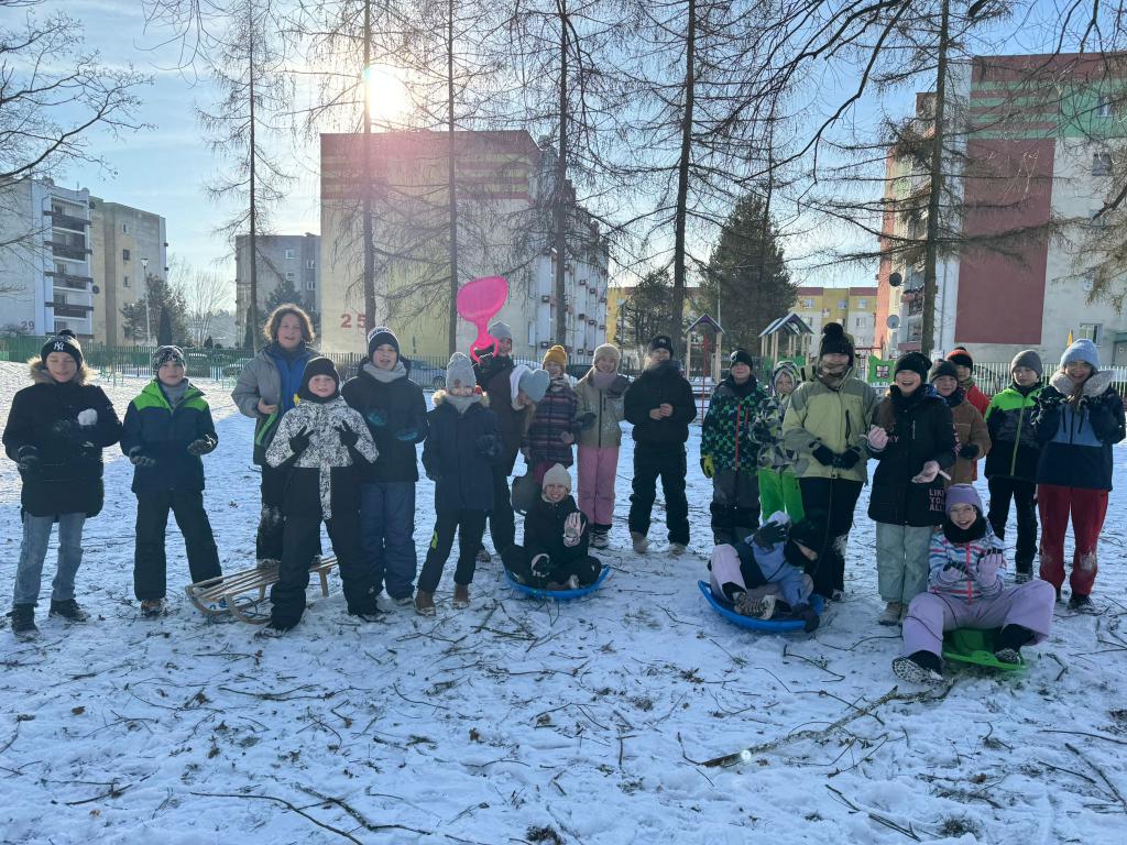 Uczniowie aktywnie spędzili czas, ciesząc się zimową pogodą i możliwością oderwania się od szkolnych ławek. Takie zajęcia to nie tylko ruch i zdrowie, ale też świetna integracja i nauka aktywnego spędzania czasu wolnego. Oby jeszcze była okazja, aby ponownie pozjeżdżać na sankach i nacieszyć się zimą!