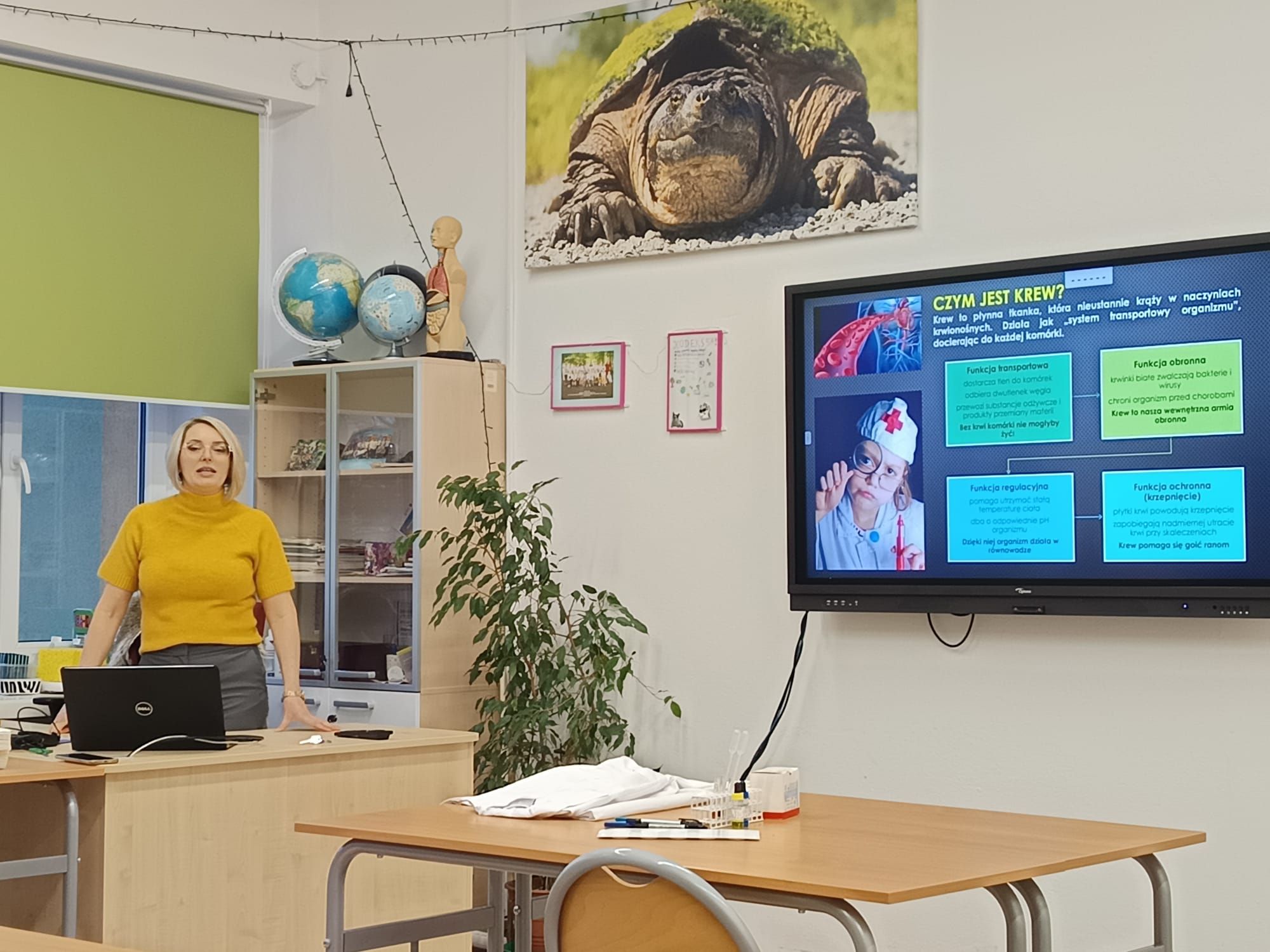 W części wykładowej uczniowie poznali historię krwi jako leczniczego płynu, pierwsze próby transfuzji oraz odkrycia związane z grupami krwi. Była to fascynująca podróż przez rozwój medycyny i nauk biologicznych.
