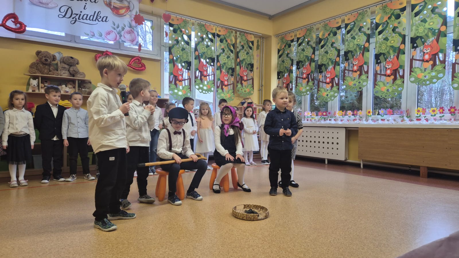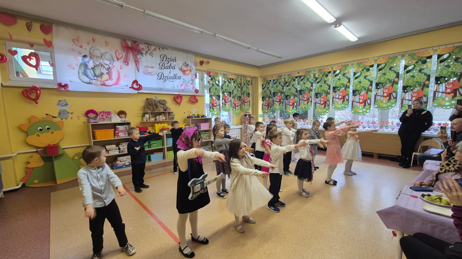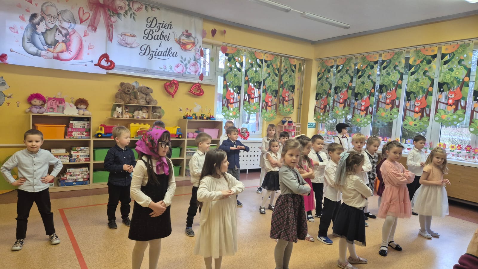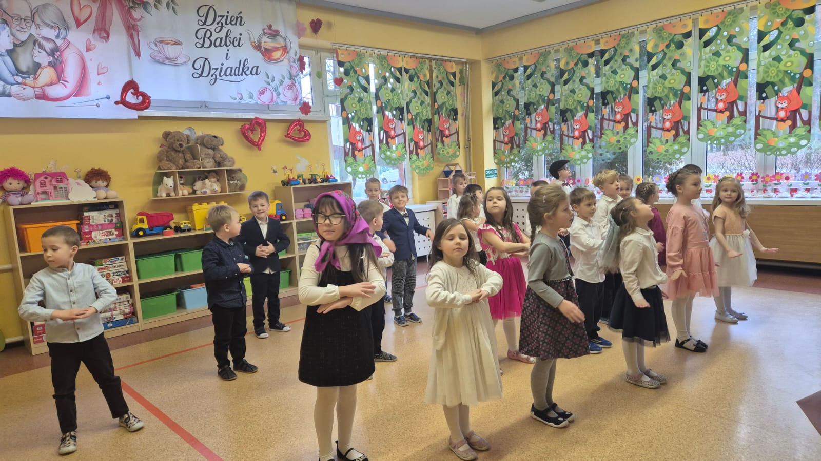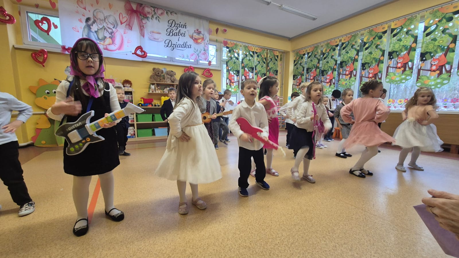 Tego dnia przedszkolaki zamieniły się w prawdziwych aktorów. Wcielając się w role babć, dziadków i wnucząt, zaprezentowały pełen humoru i wzruszeń spektakl teatralny, który zachwycił zaproszonych gości. Mali artyści oczarowali również występami tanecznymi do utworów „Mam Supermoce”, „Love Me Do” zespołu The Beatles oraz energicznego „Rock and Rolla”. Całość dopełniły piękne piosenki ilustrowane ruchem, wywołujące uśmiechy i wzruszenie na twarzach Babć i Dziadków.