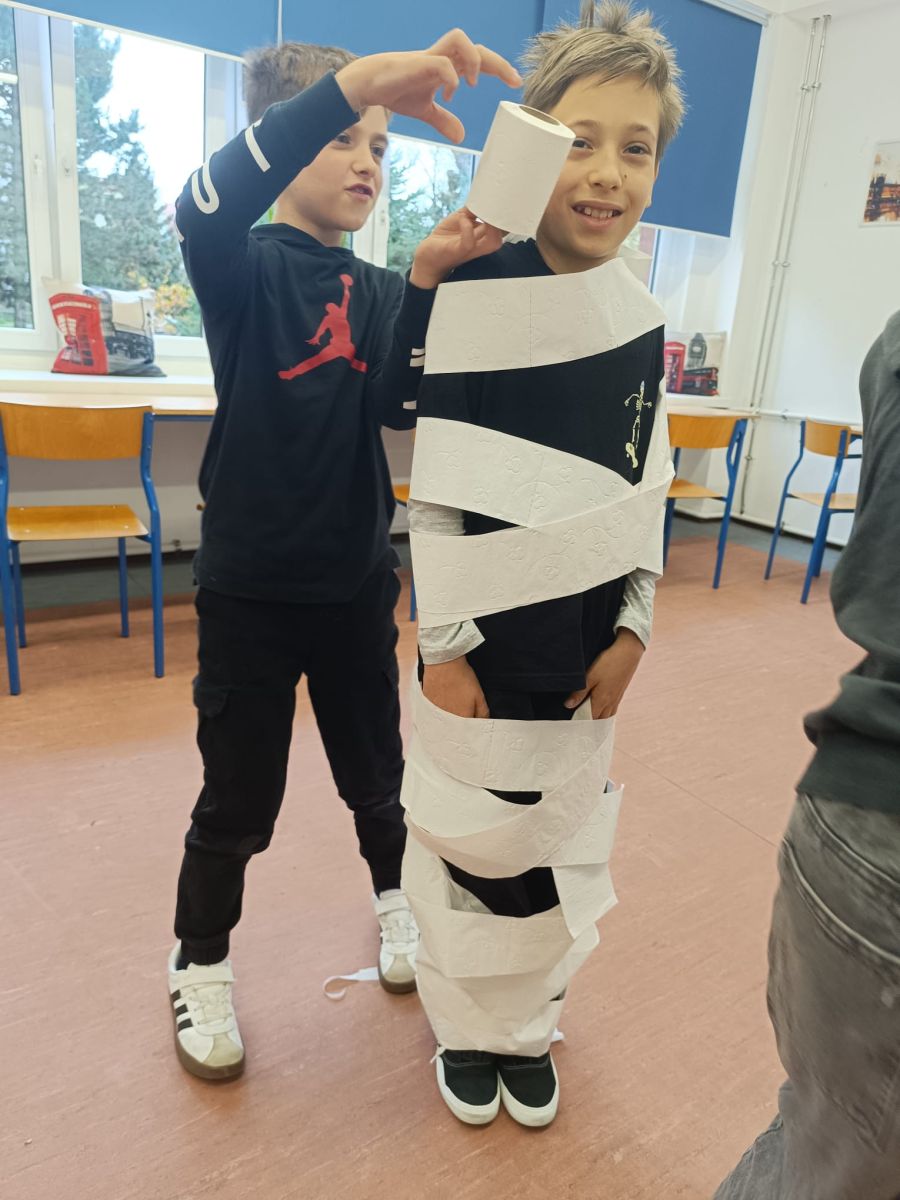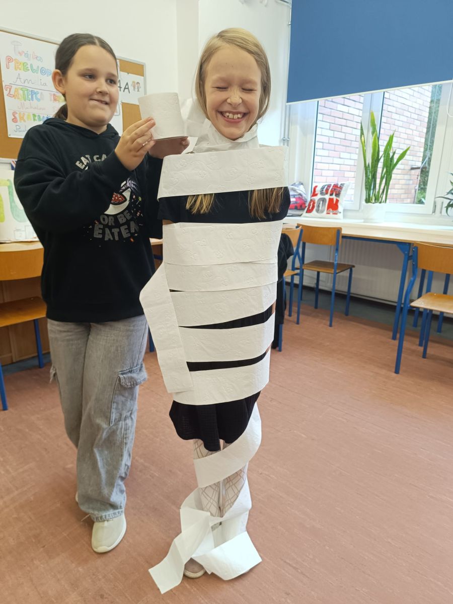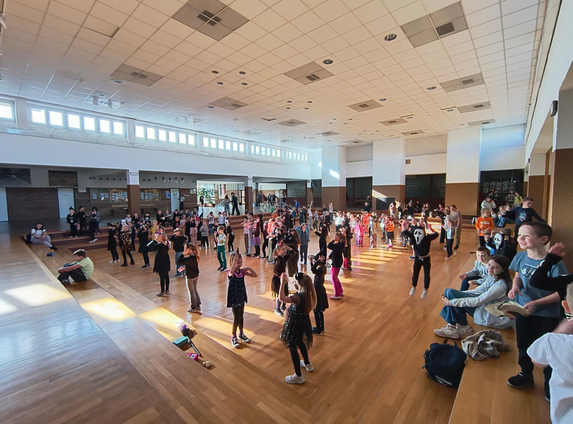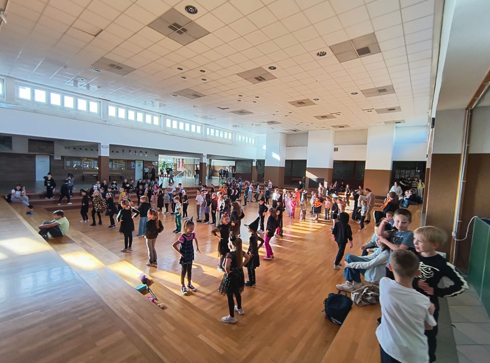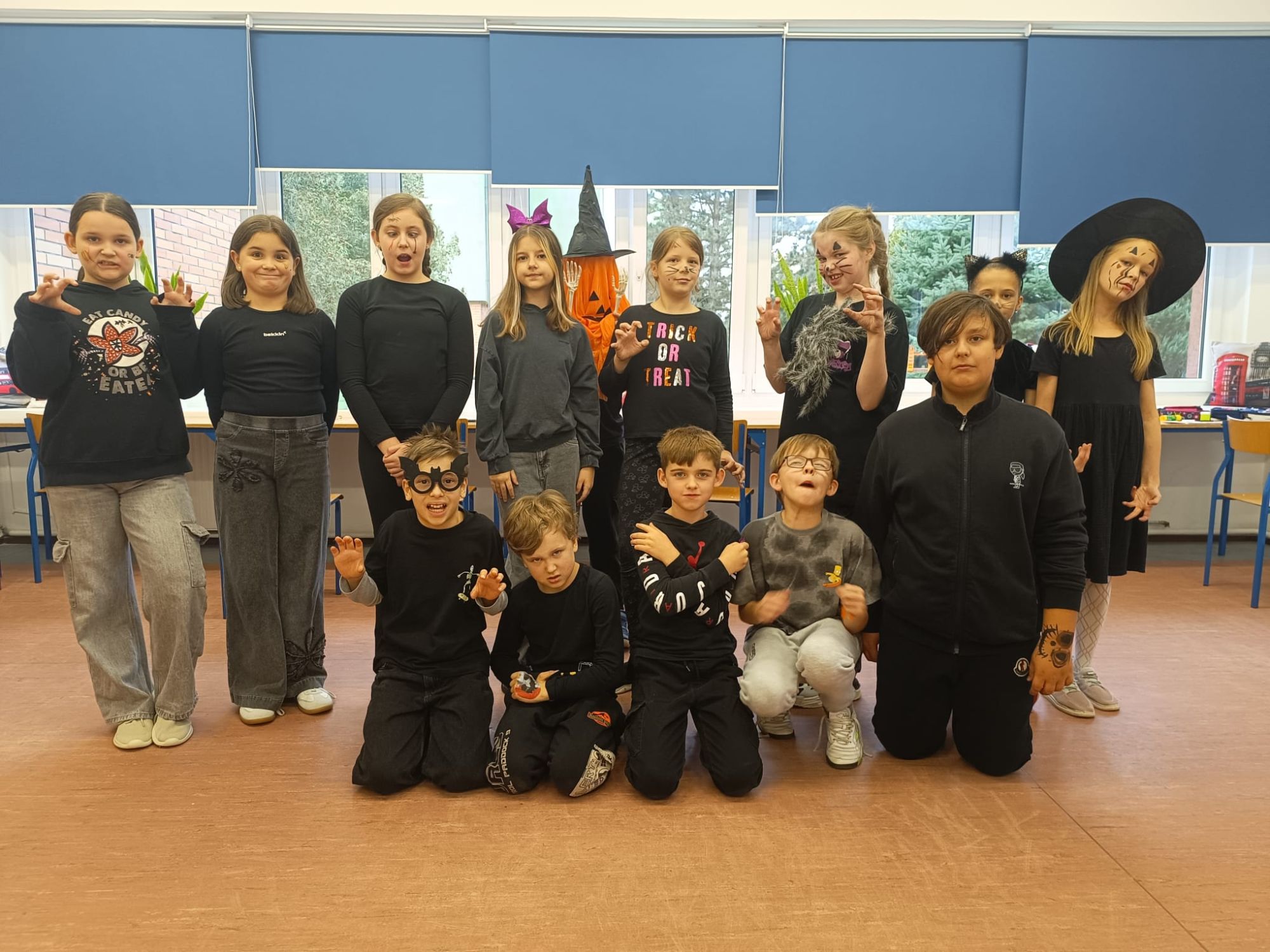 W dniu 31 października 2025 roku w naszej szkole zapanował wyjątkowy, halloweenowy nastrój! Uczniowie klas I–III oraz nasze przedszkolaki z zerówki przyszli przebrani w różnorodne stroje związane z tym świętem – można było spotkać czarownice, wampiry, duchy, a nawet sympatyczne dynie.