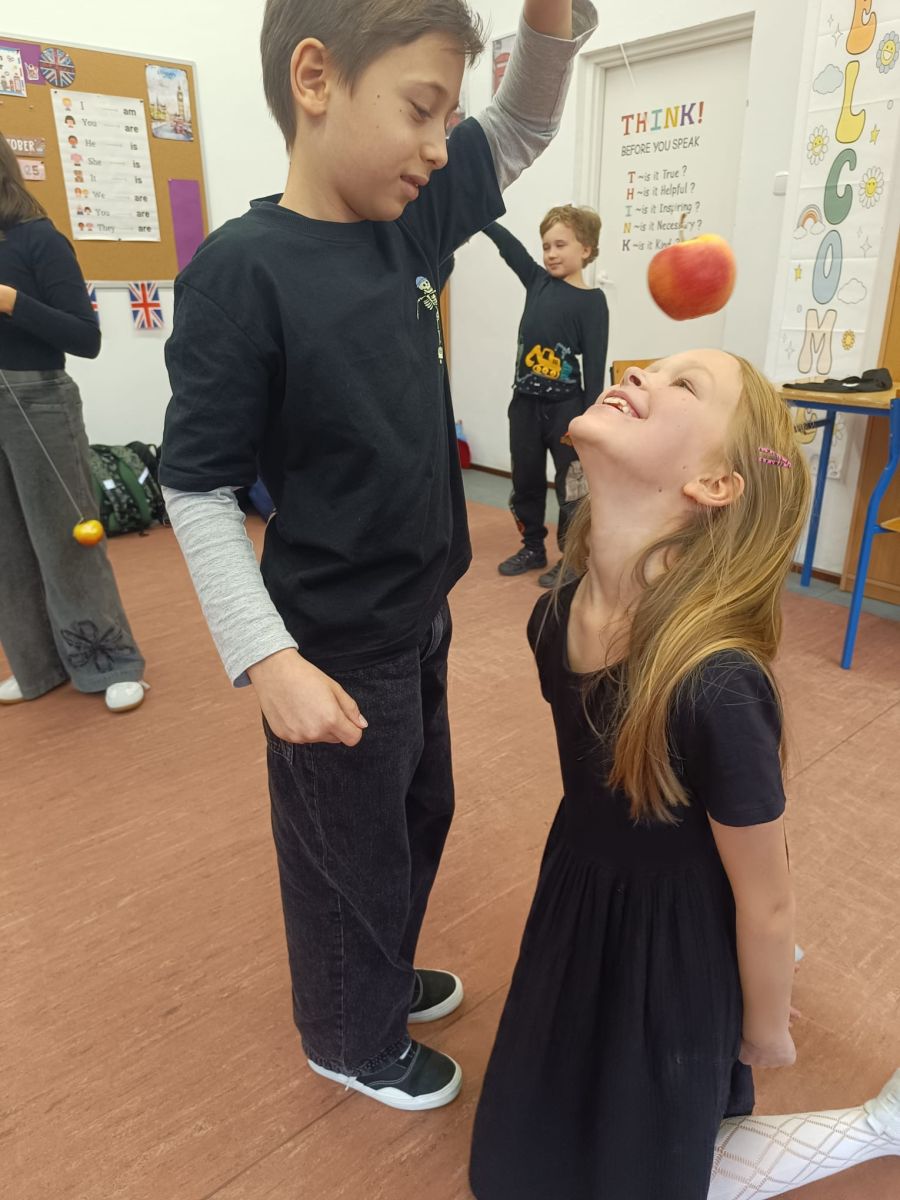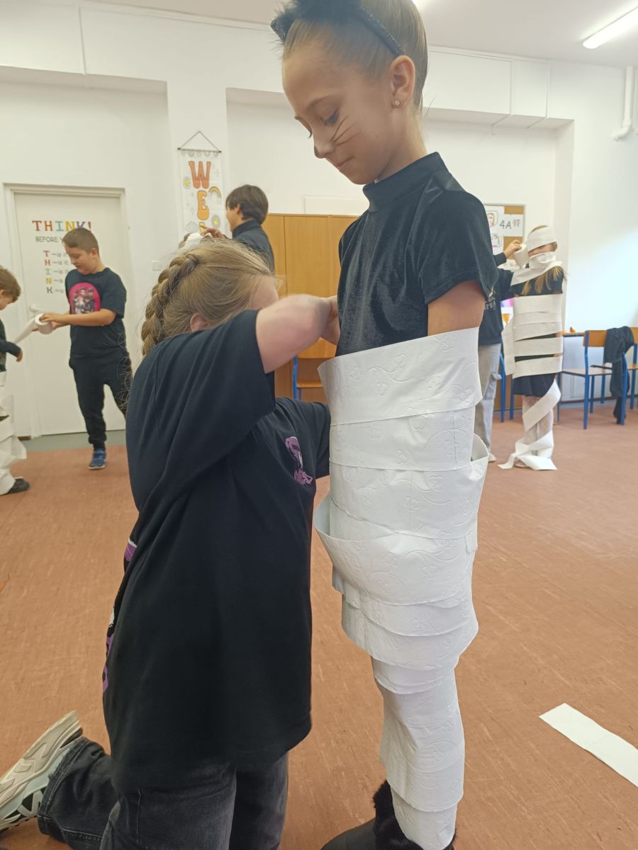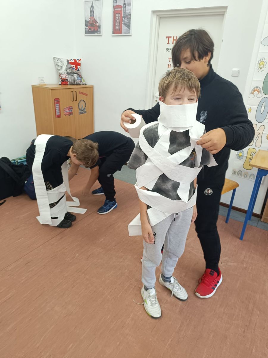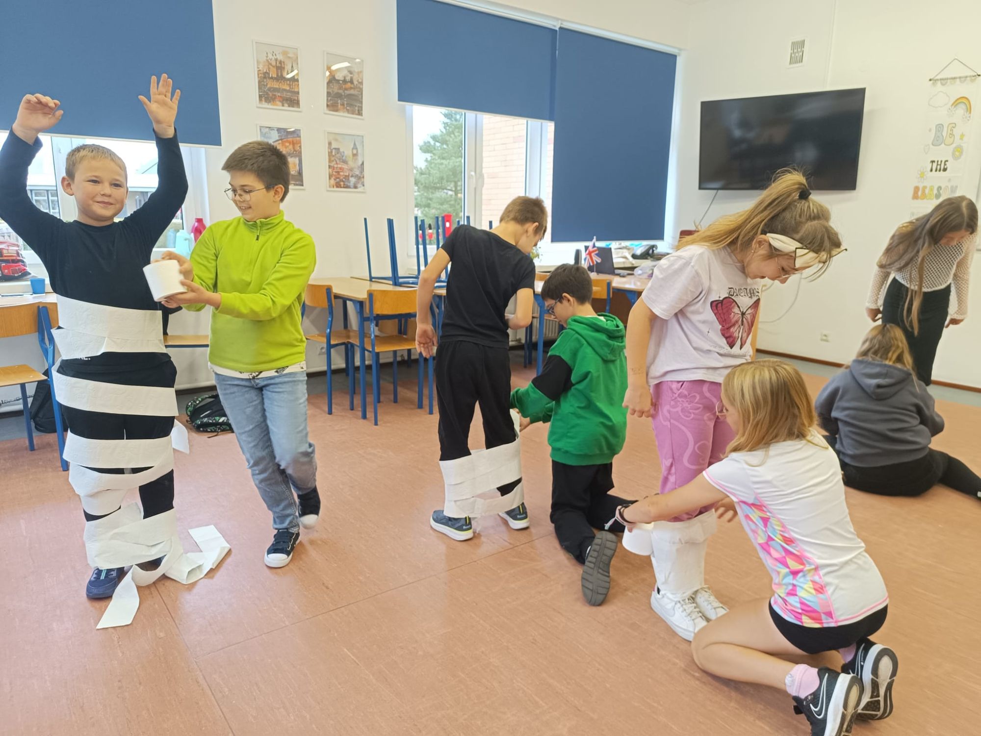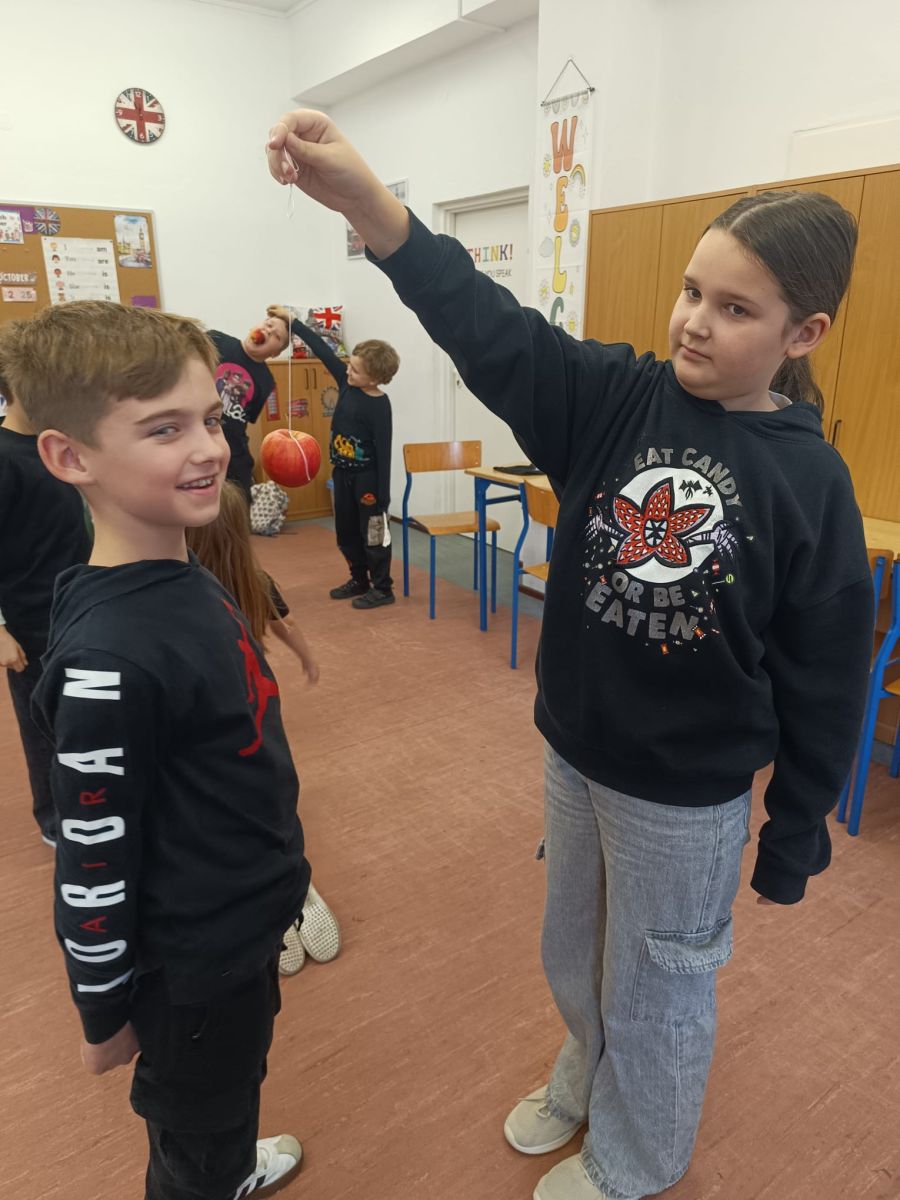 Podczas zajęć z języka angielskiego dzieci poznawały słownictwo oraz tradycje związane z obchodami Halloween w krajach anglojęzycznych. Nauka połączona z zabawą sprawiła wszystkim wiele radości – nie zabrakło śmiechu, kreatywności i oczywiście odrobiny słodkości!