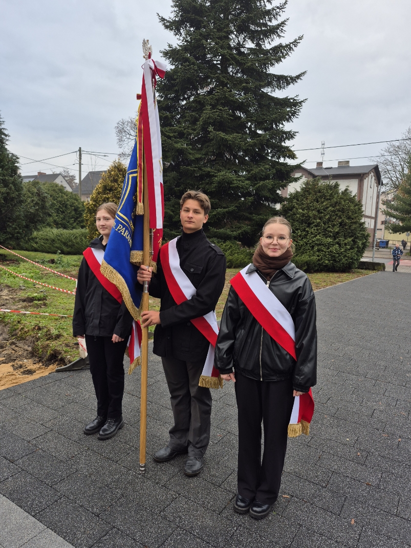 Dziękujemy naszemu pocztowi za reprezentowanie szkoły z powagą i dumą oraz Pani Dyrektor i Pani Iwonie Podstawie za troskliwą opiekę i wsparcie uczniów podczas uroczystości.