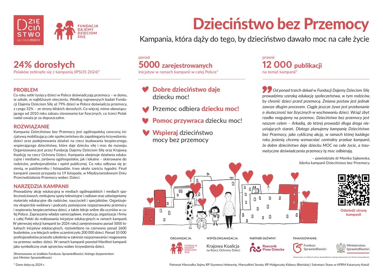 Przemoc odbiera dziecku moc. Wierzymy, że można i trzeba to zmienić. Każde dziecko ma prawo do dzieciństwa wolnego od przemocy – bez bicia, krzyków, zawstydzania, kar i gróźb.