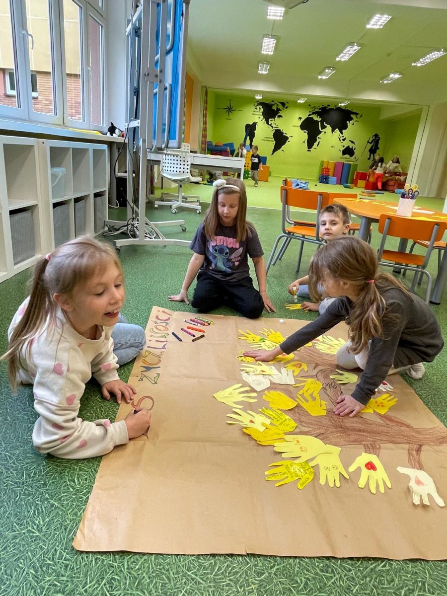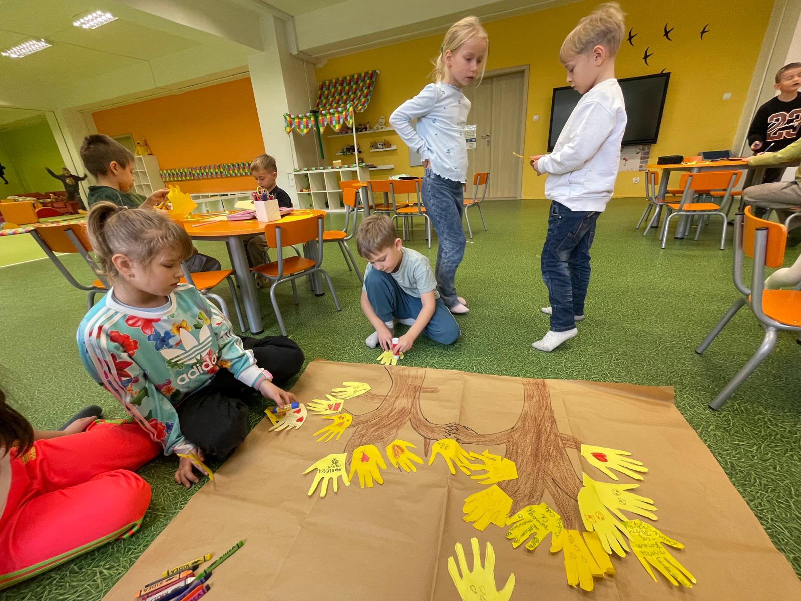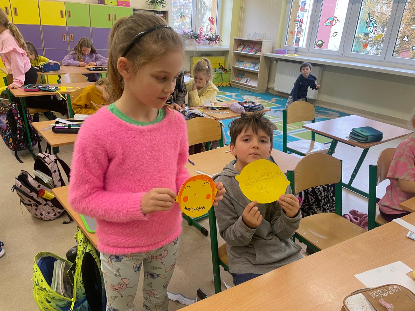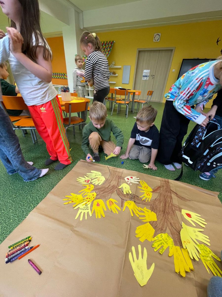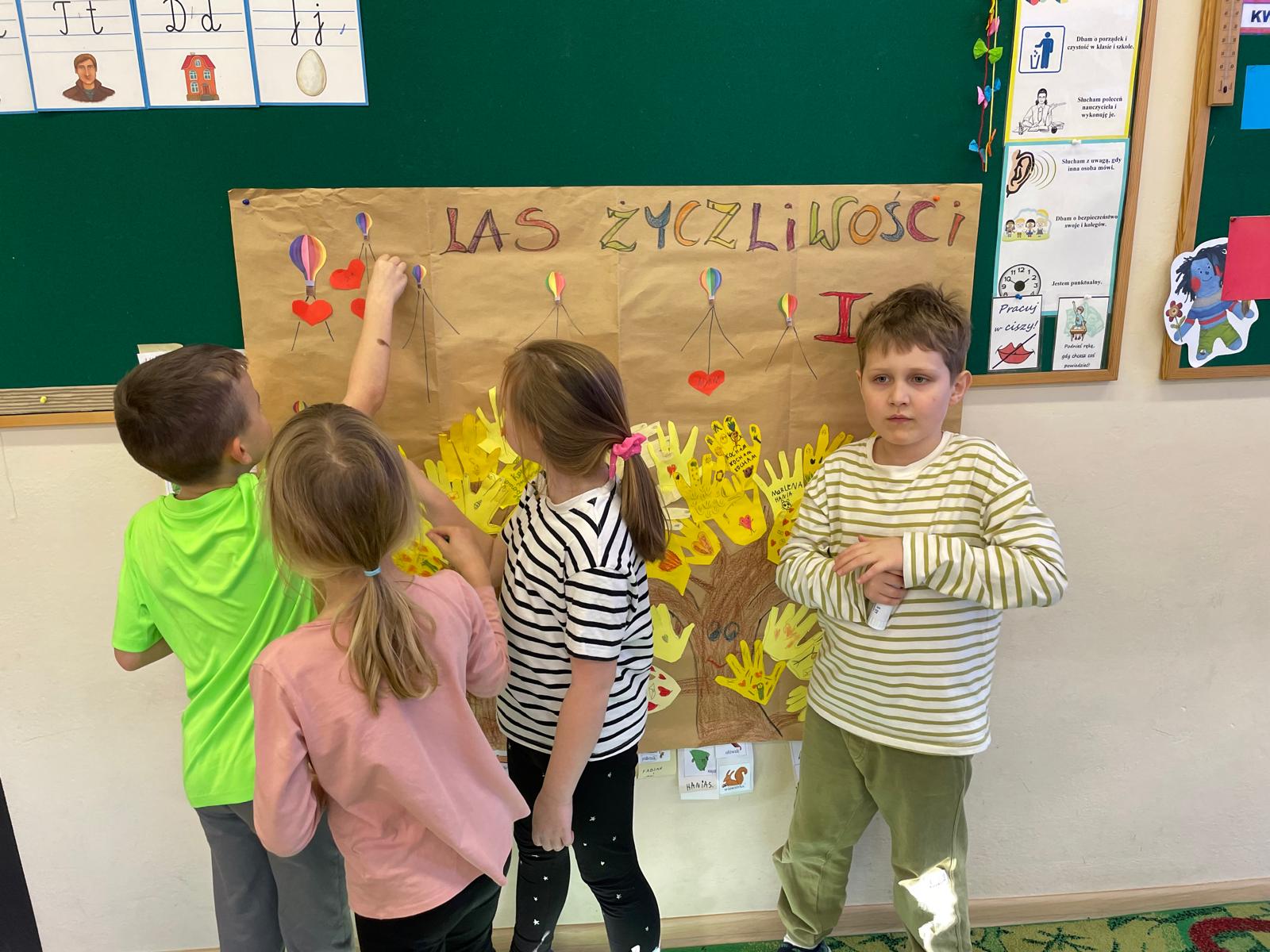 W klasach 1–3 zrobiło się wyjątkowo ciepło i pogodnie. Dzieci nie tylko kolorowały pełne dobroci obrazki, ale też tworzyły wspólne plakaty życzliwości, takie jak „Las życzliwości”, gdzie każde drzewo symbolizowało jeden dobry gest, słowo albo uczynność.