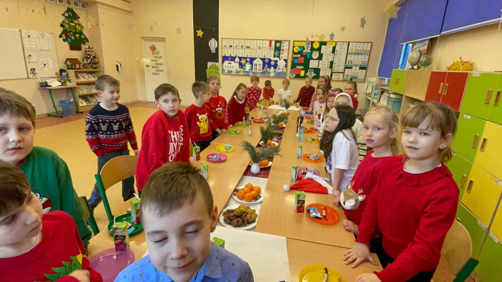 W piątek, 19 grudnia, w naszej szkole odbyły się klasowe spotkania świąteczne, potocznie nazywane wigiliami klasowymi. Był to wyjątkowy czas integracji, rozmów, wspólnego kolędowania i bycia razem w atmosferze życzliwości oraz spokoju. Takie chwile uczą dzieci, jak ważne są relacje, wzajemny szacunek i umiejętność dzielenia się dobrem. To piękna tradycja, która przypomina o istocie Świąt Bożego Narodzenia – narodzinach Jezusa, miłości do drugiego człowieka i nadziei, która płynie z betlejemskiej nocy.