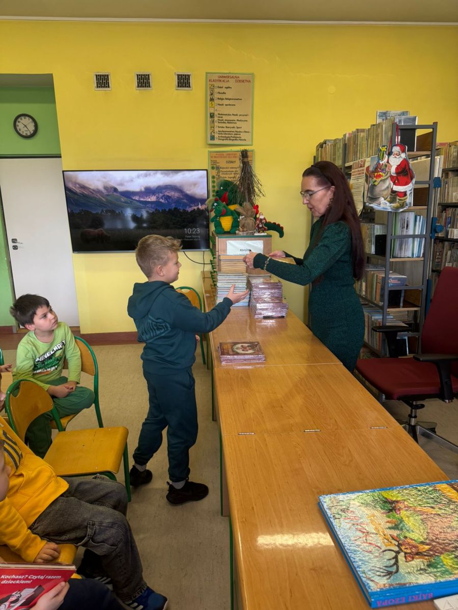 W grudniu kończącego się już roku 2025 dwie klasy pierwsze: IA Pani Violetty Wińskiej i IB Pani Doroty Olearczyk odwiedziły Bibliotekę kl. I – IV SP3. Podczas lekcji, które weszły już w tradycję naszej szkoły, uczniowie przypomnieli sobie „O co prosi książka?”. Po omówieniu wszystkich w tym temacie ważnych kwestii, złożyli Książce uroczyste przyrzeczenie, że będą o nią dbać, a także słuchać jej rad, i zostali pasowani na pełnoprawnych czytelników biblioteki szkolnej. Pierwszoklasiści w prezencie otrzymali Wyprawki Czytelnicze, które są kontynuacją kampanii „Mała książka – wielki człowiek” Instytutu Książki z Krakowa. Od trzech lat w skład wyprawki wchodzi książka Justyny Bednarek „Wnuczka antykwariusza” oraz poradnik dla rodziców „Kochasz – czytaj razem z dzieckiem!”. I co roku wprowadza Małych i Dorosłych Czytelników w świat Dobra, Piękna i uwrażliwienia na drugiego człowieka. Wojciech Widłak, polski pisarz tworzący również dla dzieci, tak skomentował tę książkę: