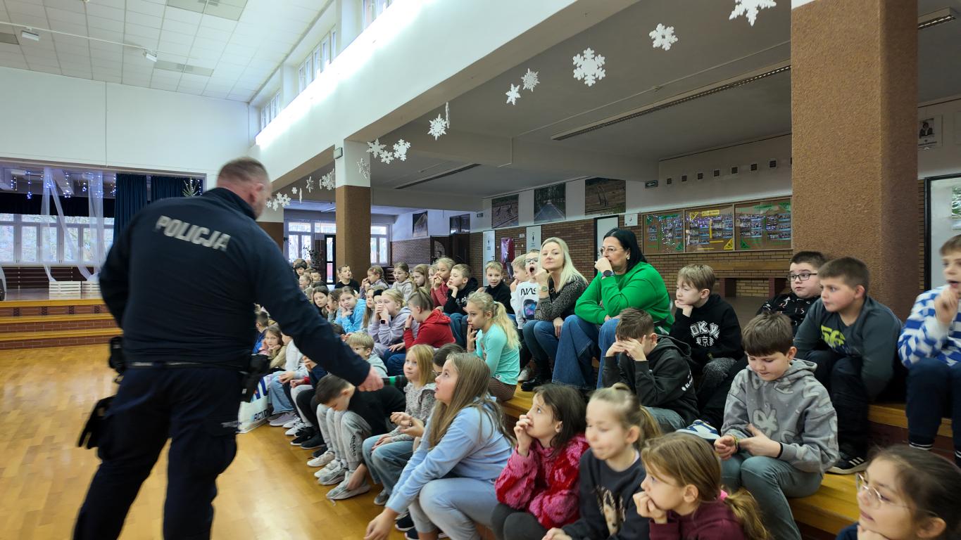 W naszej szkole odbyło się spotkanie profilaktyczno-edukacyjne z funkcjonariuszami Policji, poświęcone zasadom bezpieczeństwa podczas ferii zimowych. W wydarzeniu uczestniczyli uczniowie klas I–III oraz dzieci z oddziału przedszkolnego.