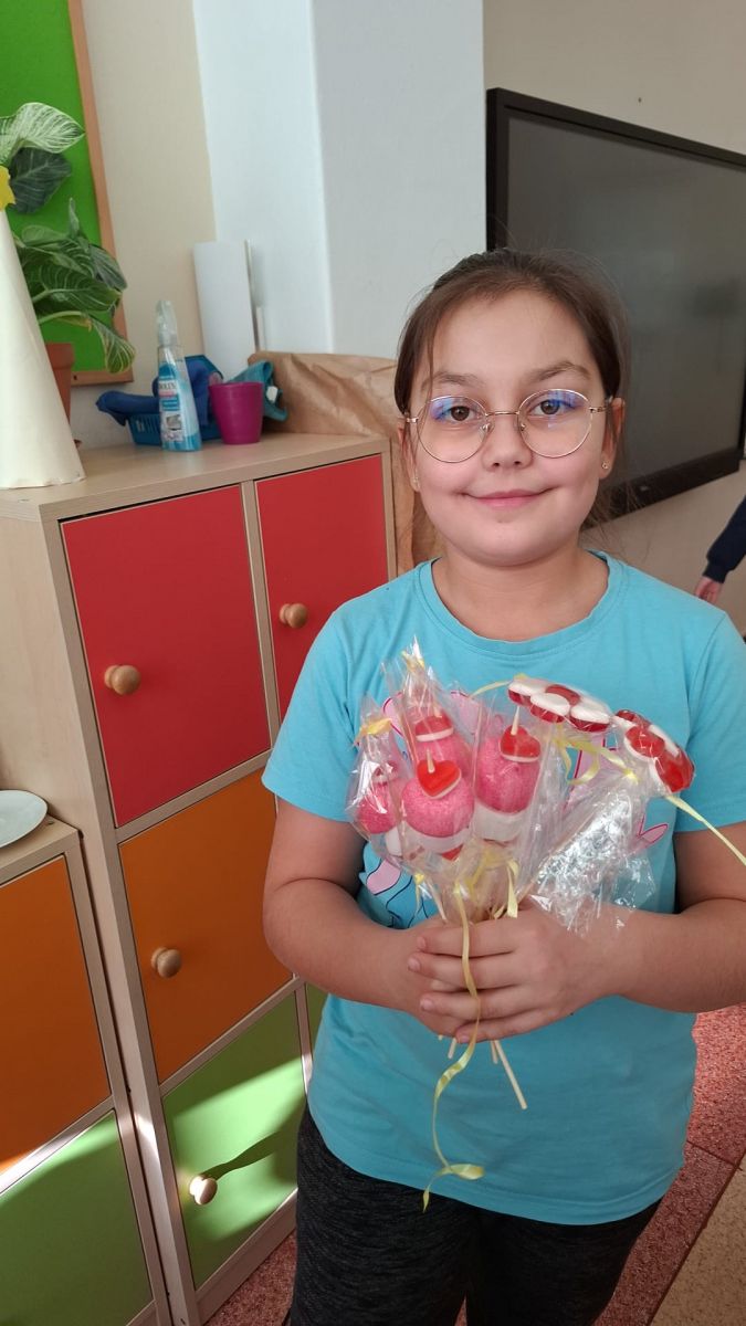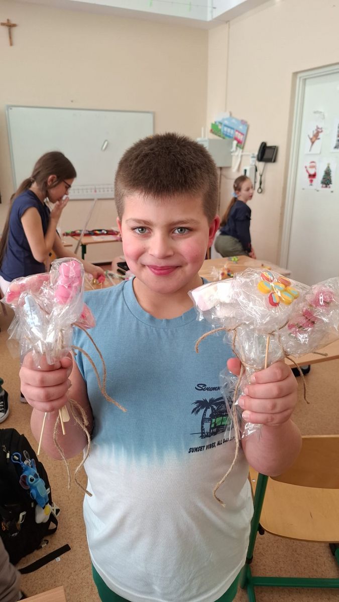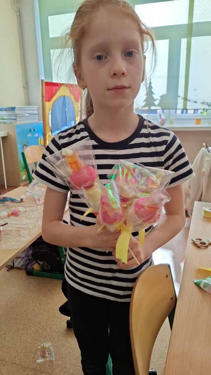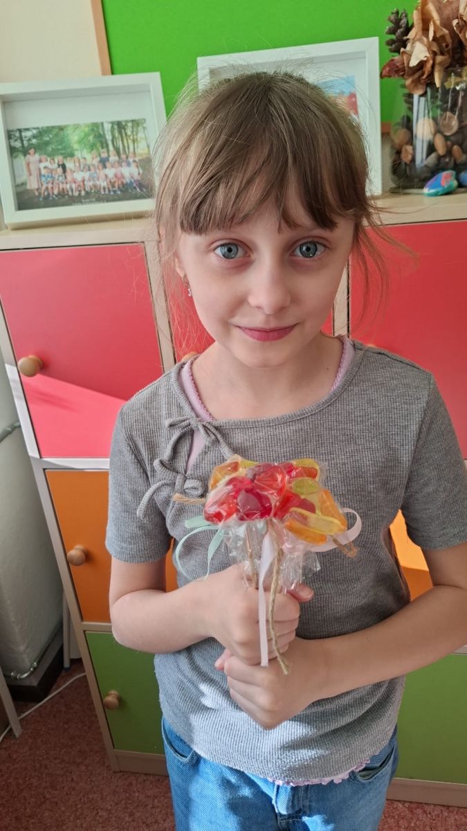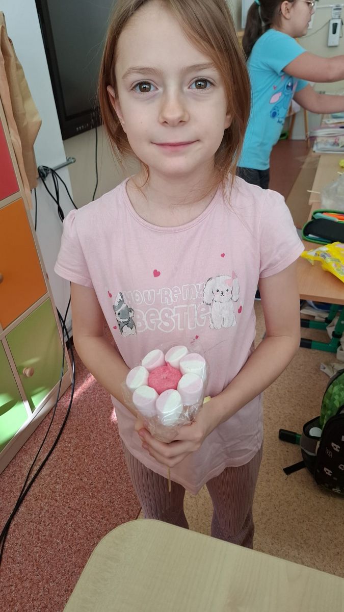 Z okazji Dnia Babci i Dziadka uczniowie klasy 3a z ogromnym zaangażowaniem przygotowali wyjątkowe, słodkie bukieciki. Dzieci wykazały się kreatywnością i pomysłowością, tworząc kolorowe kompozycje z żelek oraz pianek, pełne radości, serca i dziecięcego uroku.