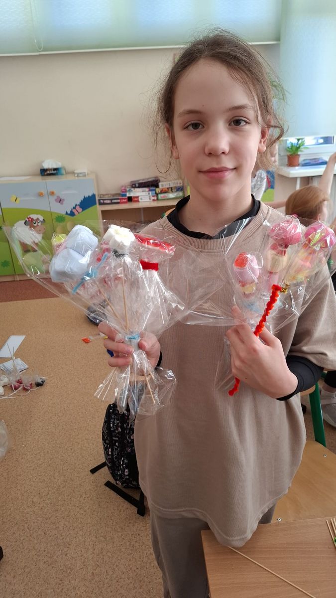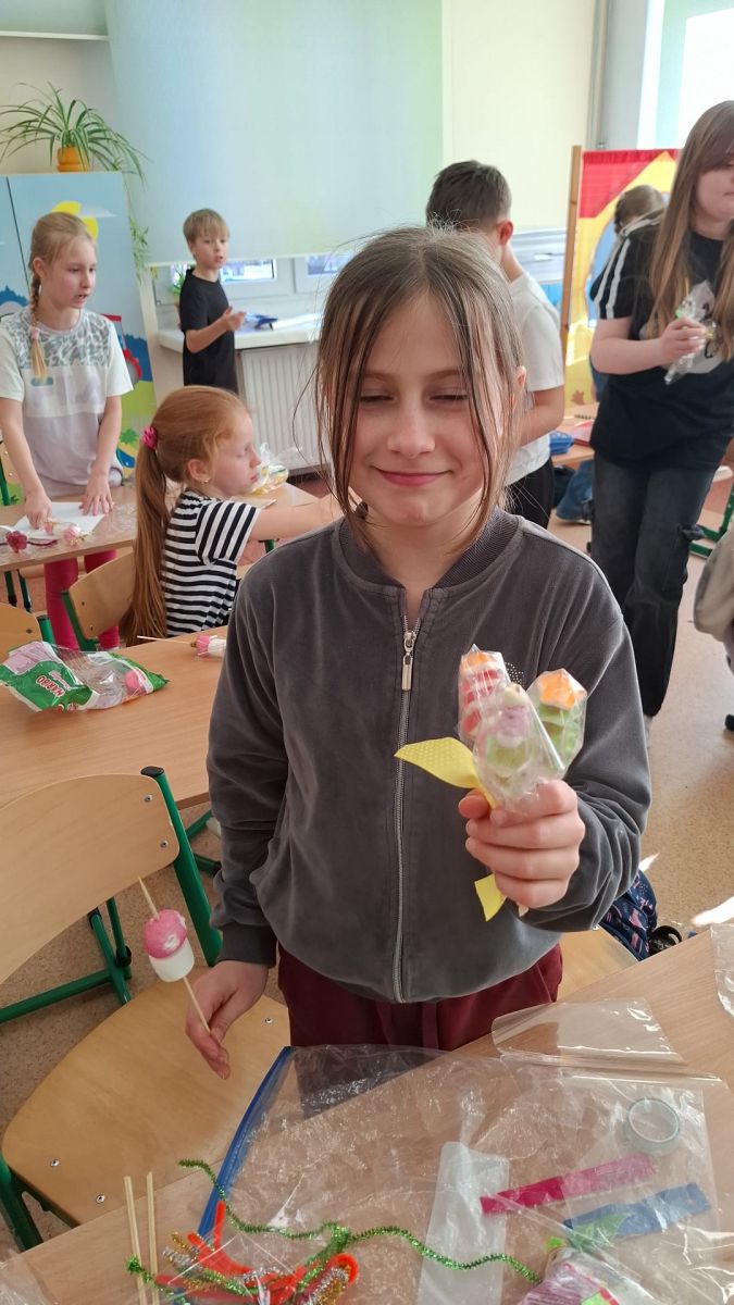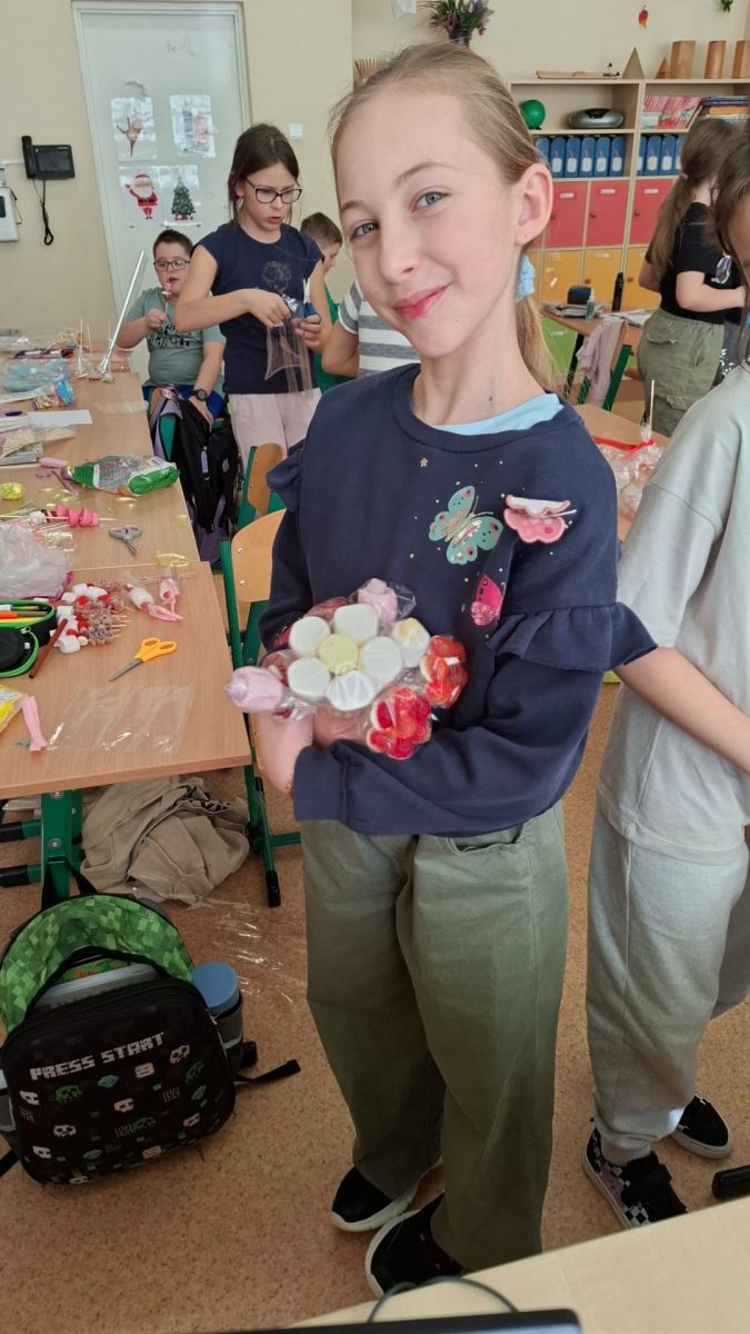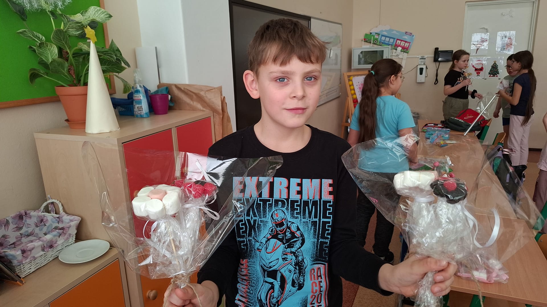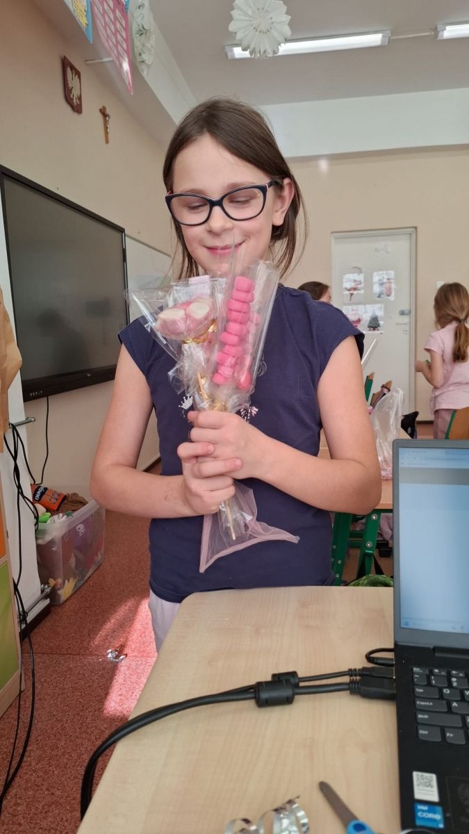Z okazji Dnia Babci i Dziadka uczniowie klasy 3a z ogromnym zaangażowaniem przygotowali wyjątkowe, słodkie bukieciki. Dzieci wykazały się kreatywnością i pomysłowością, tworząc kolorowe kompozycje z żelek oraz pianek, pełne radości, serca i dziecięcego uroku.