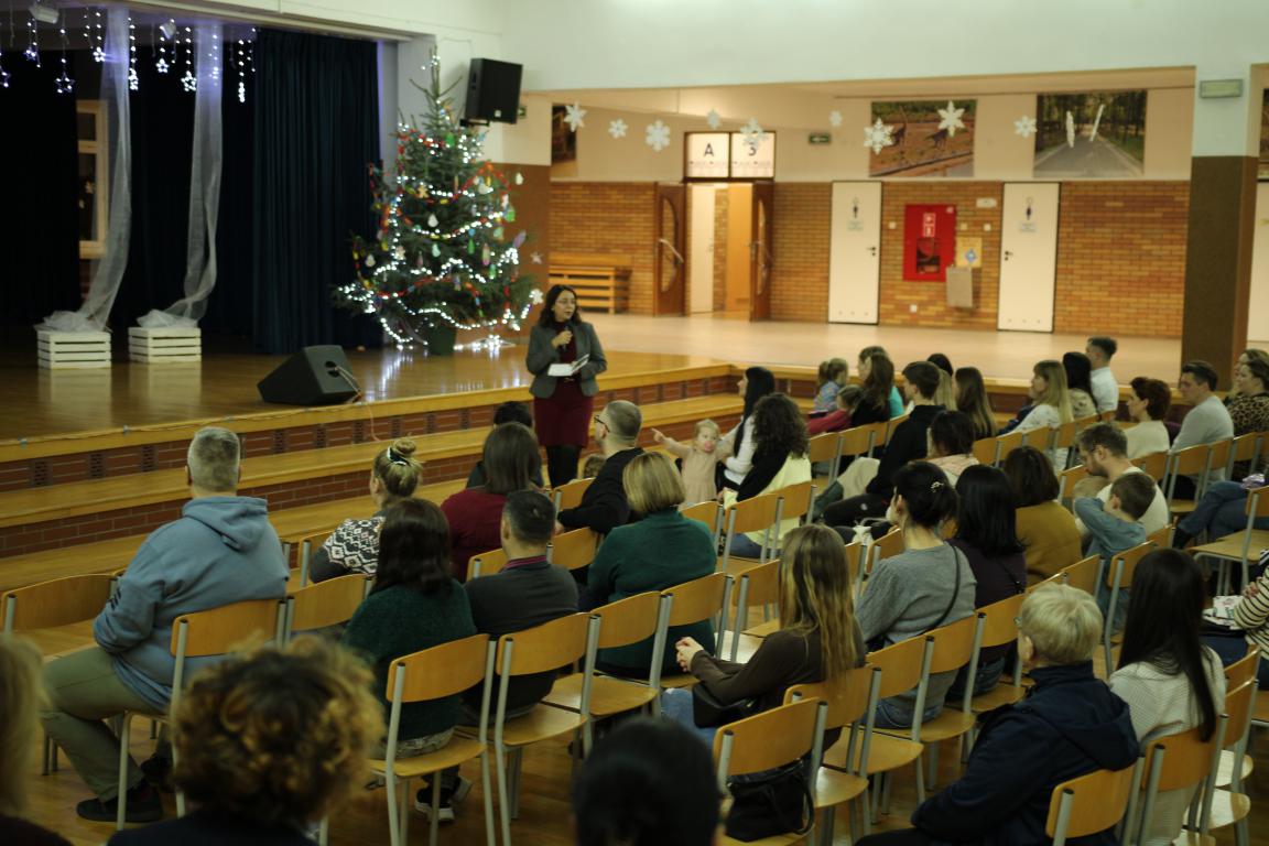 W środę, 28 stycznia o godzinie 17:00, w naszej szkole odbył się Dzień Otwarty, skierowany zarówno do przyszłych pierwszoklasistów, jak i przyszłych przedszkolaków wraz z Rodzicami. Spotkanie rozpoczęło się na auli szkolnej, gdzie wszystkich gości serdecznie powitała Pani Dyrektor Jolanta Bajor, przedstawiając, jak funkcjonuje nasza placówka, opowiadając o organizacji pracy szkoły i oddziału przedszkolnego oraz prezentując nauczycieli pracujących z najmłodszymi – zarówno w przedszkolu, jak i w klasach 1–3. Rodzice mieli okazję poznać Kadrę Pedagogiczną, przyszłych Wychowawców klas 1 i dowiedzieć się, kto będzie towarzyszył ich dzieciom w pierwszych latach edukacji.