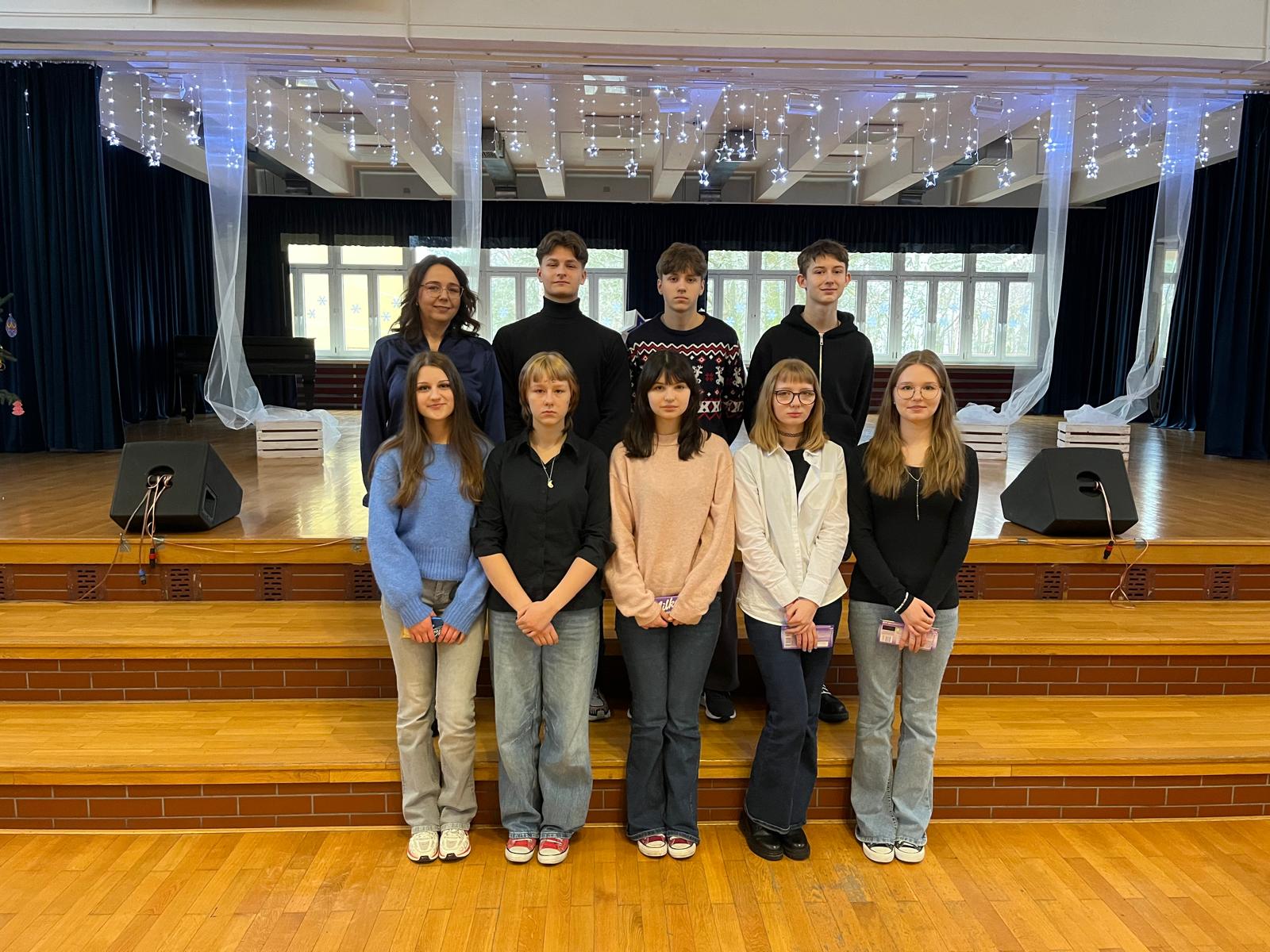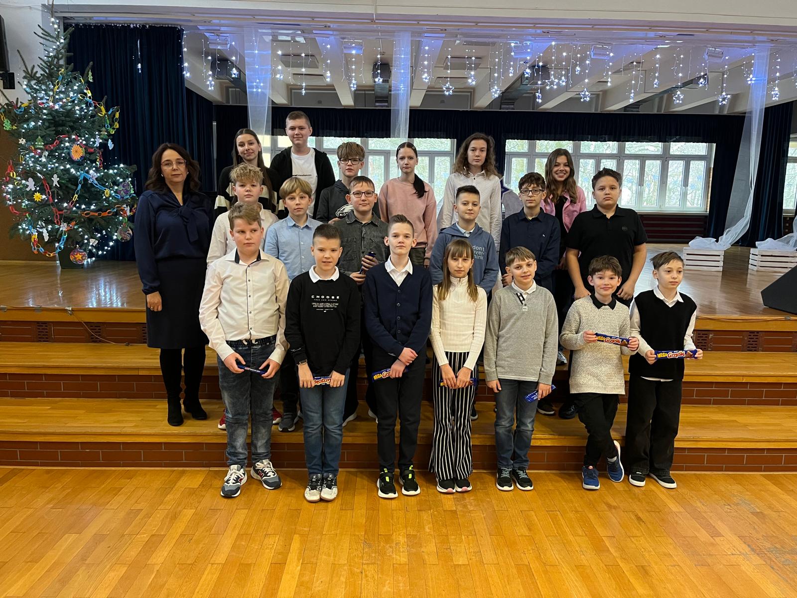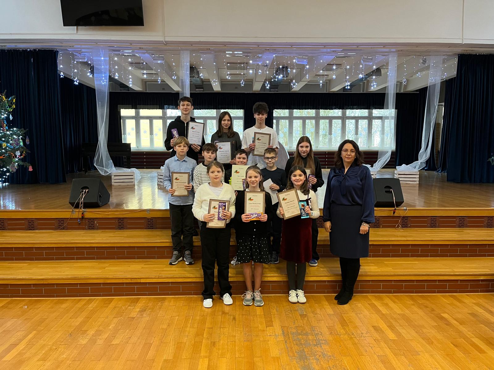 Na zakończenie spotkania dyrektor szkoły, pani Jolanta Bajor,  podziękowała uczniom za ich zaangażowanie, a nauczycielom za włożony trud, pracę i codzienne wsparcie w procesie edukacji. Następnie życzyła wszystkim udanych i bezpiecznych ferii zimowych oraz satysfakcji z pracy, sukcesów w nauce i rozwijaniu pasji w II półroczu szkolnym.