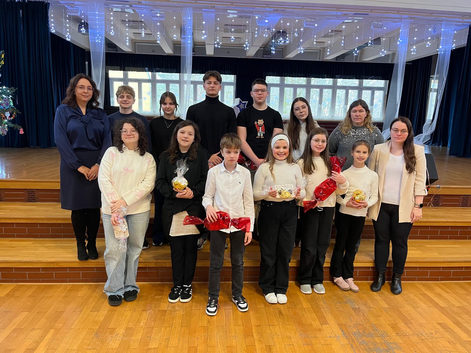 W piątek 30.01.2026 r. tuż przed samymi feriami w naszej szkole odbył się Apel podsumowujący osiągnięcia uczniów w  I półroczu roku szkolnego 2025/2026. Podczas apelu zostali nagrodzeni wszyscy uczniowie za trud i wysiłek włożony w naukę oraz wyróżnieni Ci, którzy nie opuścili ani jednego dnia w szkole, wykazali się postawą ekologiczną, brali udział w konkursach oraz reprezentowali szkołę w zawodach sportowych.