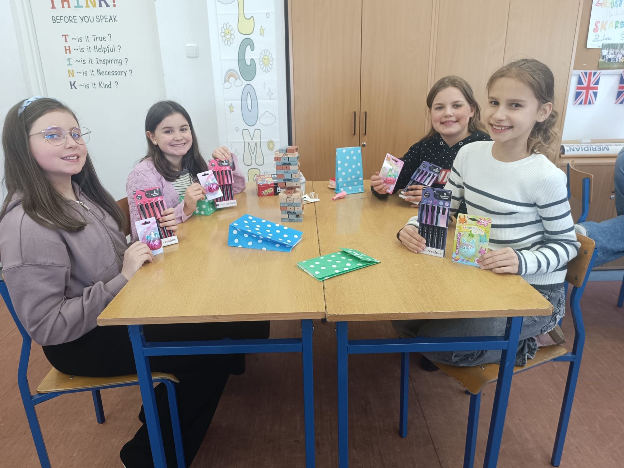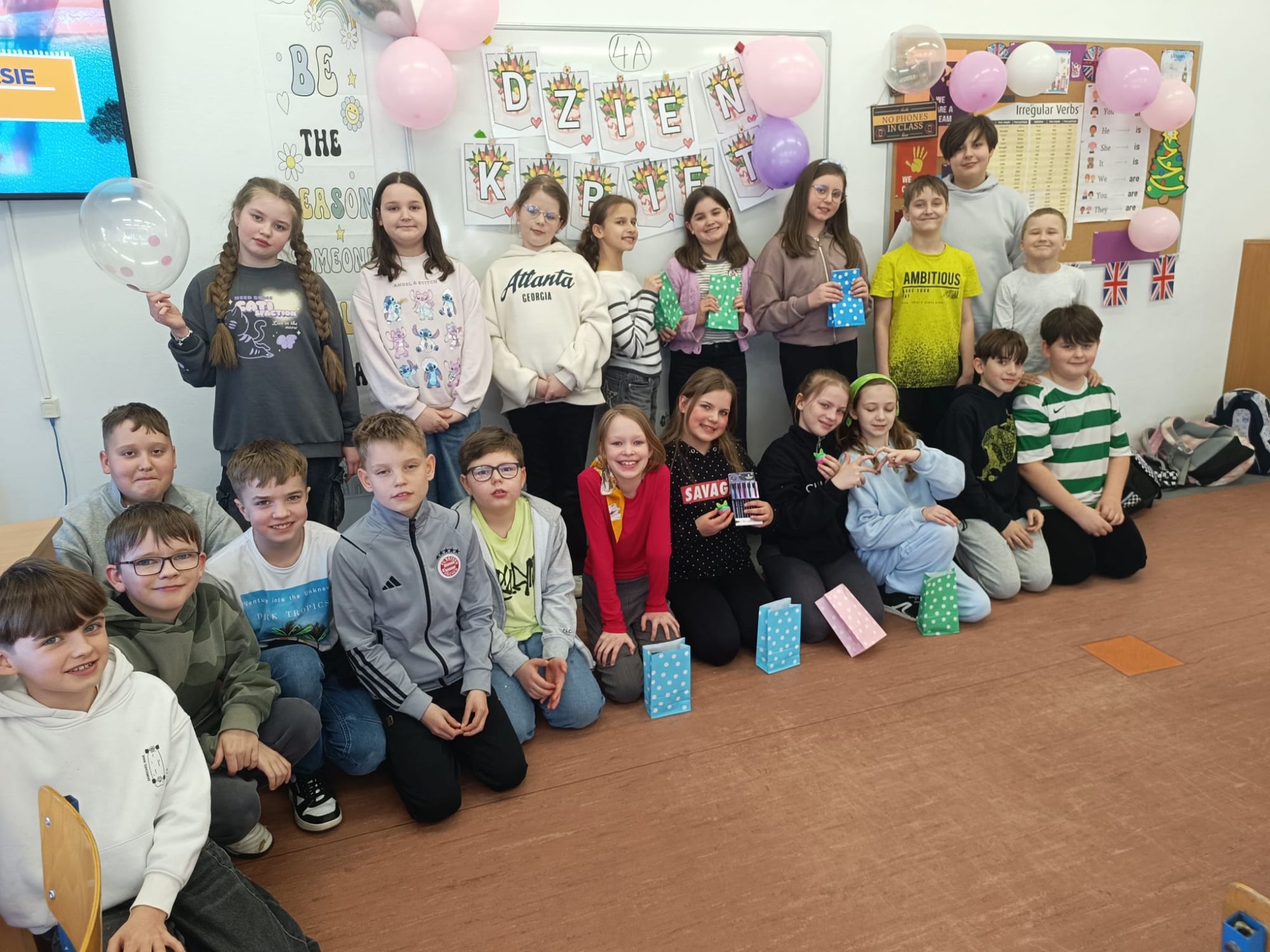W klasie 4A Dzień Kobiet świętowano pod hasłem gier, słodkości i drobnych upominków. Było dużo śmiechu, wspólnej zabawy i serdecznej atmosfery. Z kolei w klasach 2A oraz 3B odbyło się prawdziwe piżama party. Uczniowie spędzili wspólnie czas, oglądając filmy, w tym pełną humoru animację „Dzięciołek Woody jedzie na obóz”, a także delektując się przekąskami przygotowanymi przez Rodziców i rozmowami.