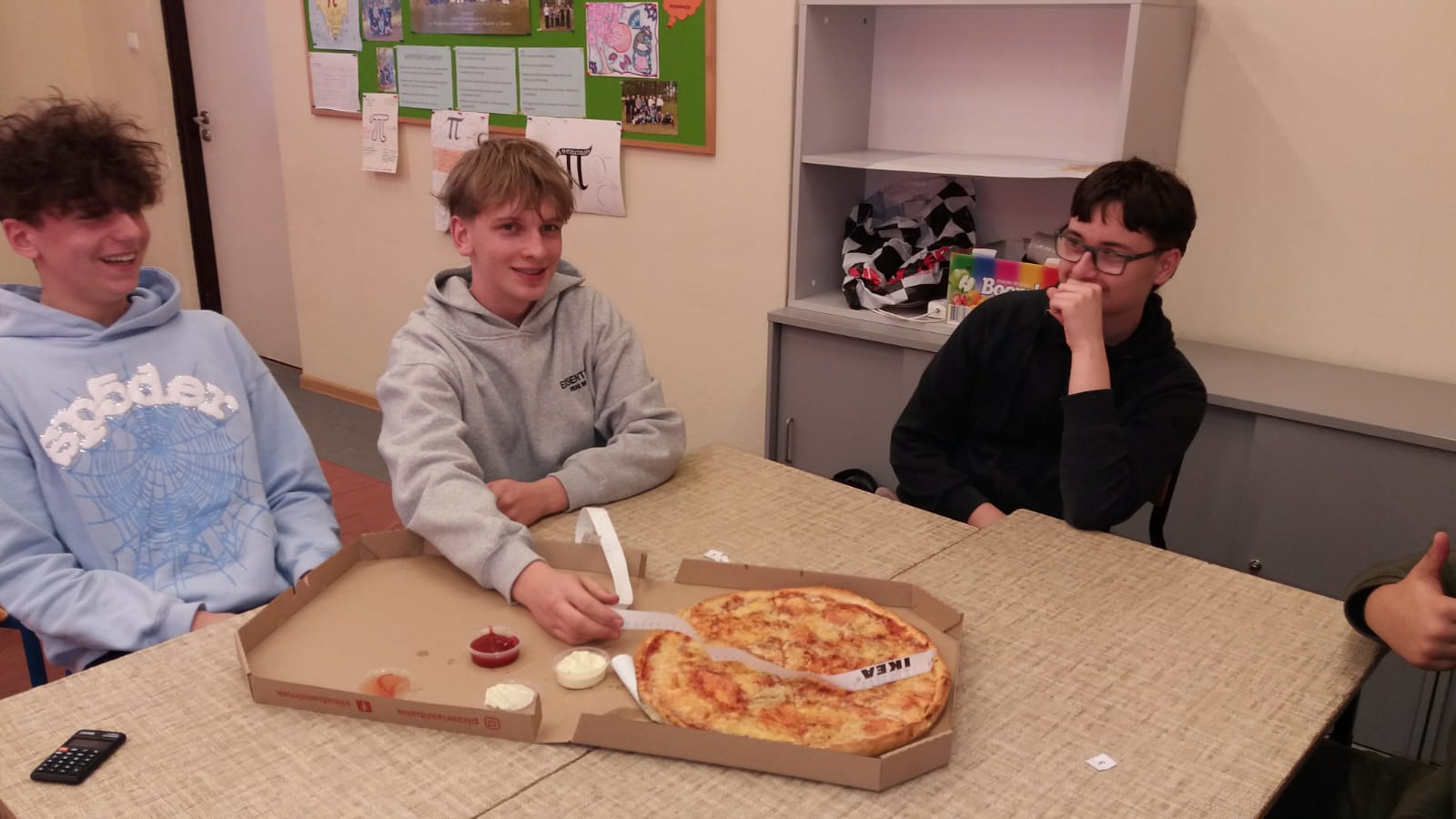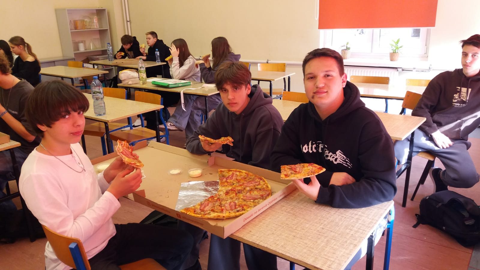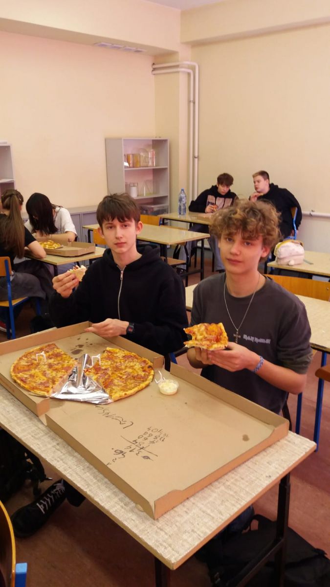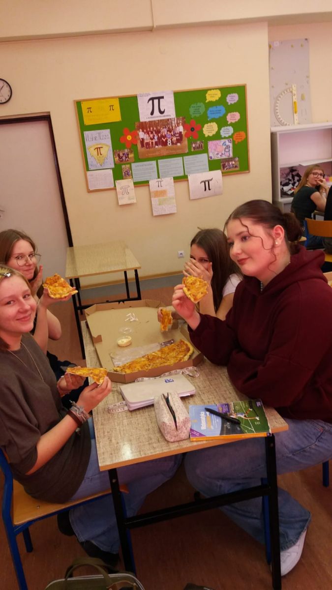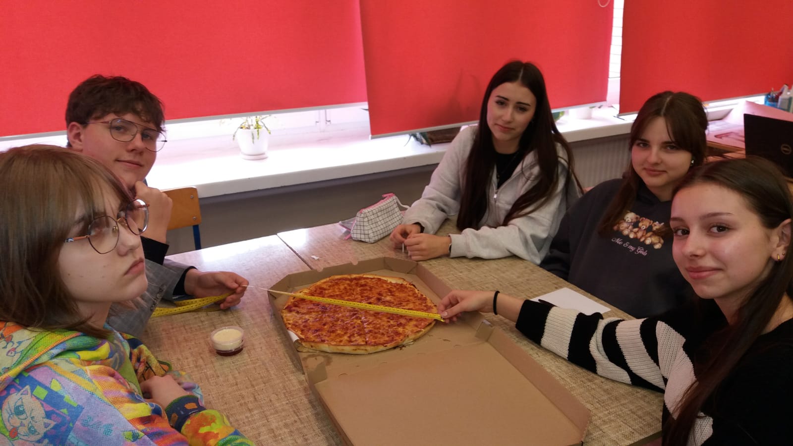 Na lekcjach w klasach 7 i 8 królowała… pizza! Uczniowie mierzyli obwód i średnicę, a następnie samodzielnie obliczali wartość liczby π. Nie zabrakło też ciekawego matematycznego dylematu – jedna duża pizza czy dwie małe? Dzięki takim zadaniom uczniowie mogli przekonać się, że praktyczna matematyka smakuje najlepiej.