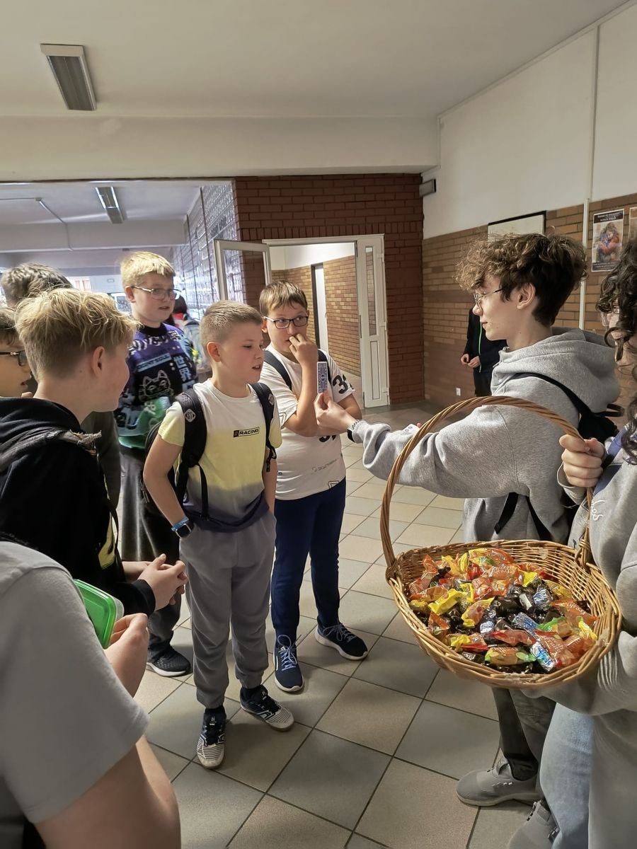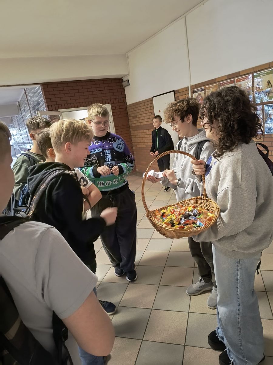 Młodsze klasy przygotowały piękne plakaty związane z matematyką i liczbą π. Podczas przerw starsi uczniowie sprawdzali znajomość tabliczki mnożenia u młodszych kolegów i koleżanek. Za poprawne odpowiedzi czekała słodka nagroda, co było dodatkową motywacją do matematycznych zmagań.