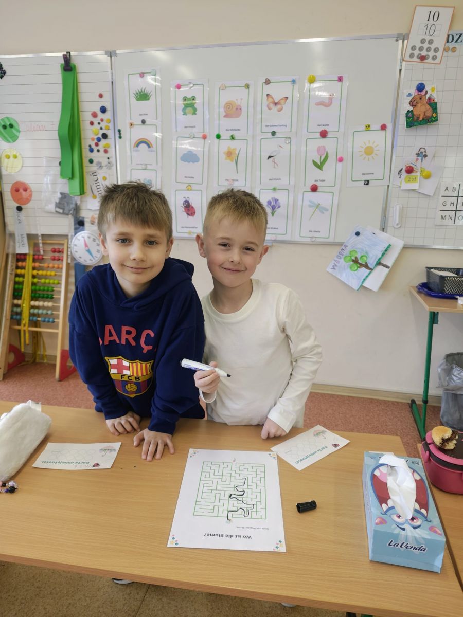 W klasie 1b odbyły się wyjątkowe zajęcia języka niemieckiego jako języka mniejszości narodowej, których tematem przewodnim była wiosna. Lekcja została zaplanowana w formie pracy metodą stacji zadaniowych, co pozwoliło uczniom uczyć się poprzez aktywne działanie, ruch oraz współpracę.