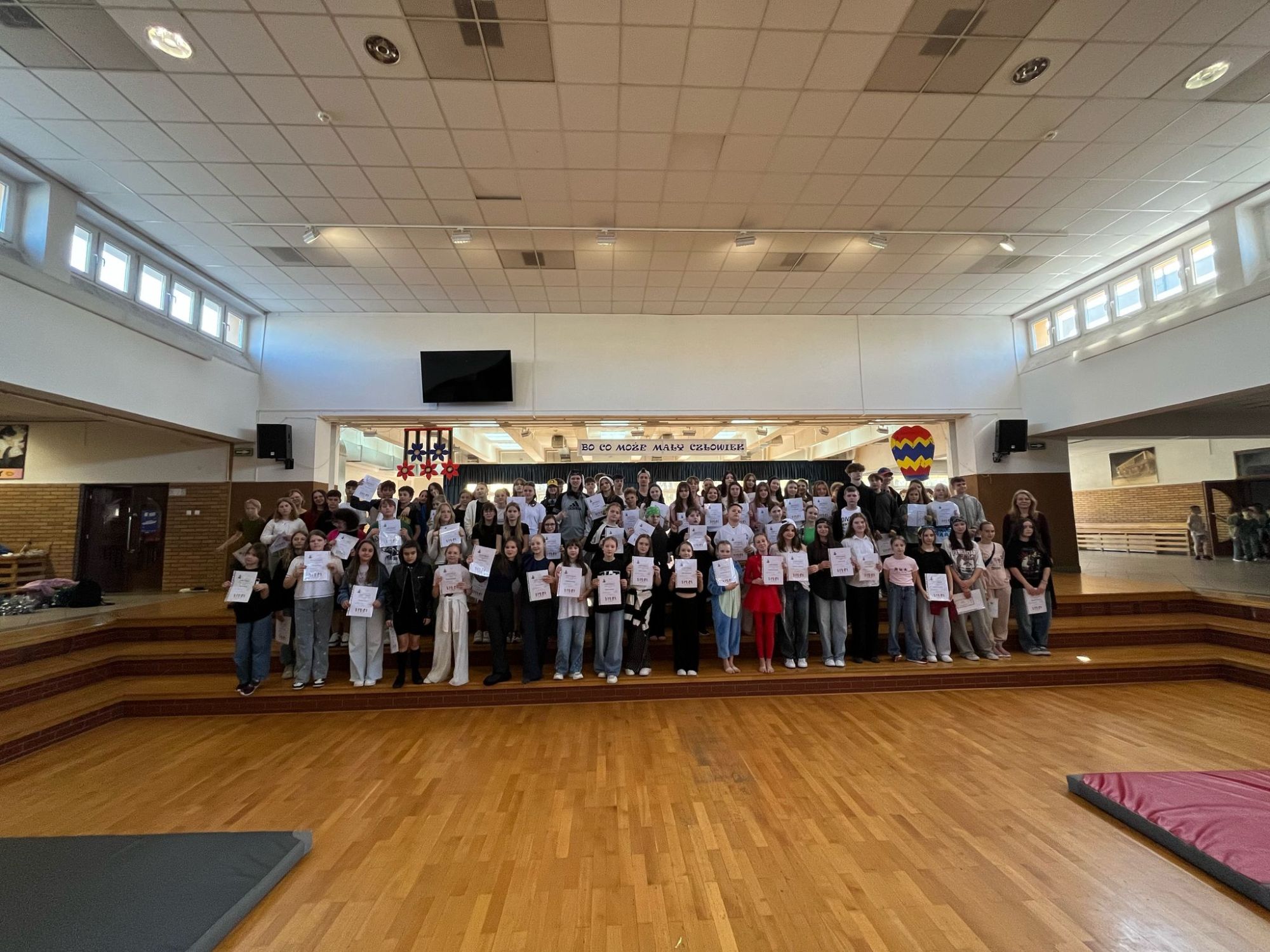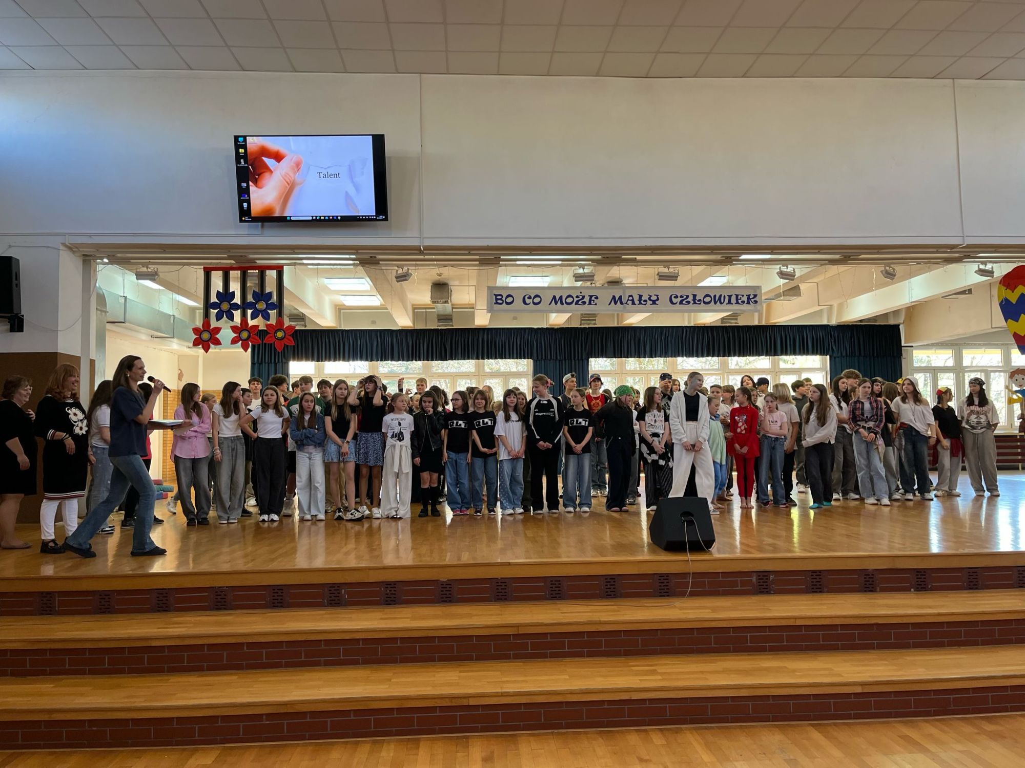 Dnia 16.04.2025 r. W naszej szkole odbyło się wyjątkowe wydarzenie, które na długo pozostanie w pamięci uczniów oraz nauczycieli – Szkolny Koncert Talentów dla klas 4-8 pod hasłem „Bo co może mały człowiek”. I choć tytuł może sugerować skromność możliwości, to każdy, kto zobaczył to widowisko, wie jedno: mały człowiek może naprawdę wiele!