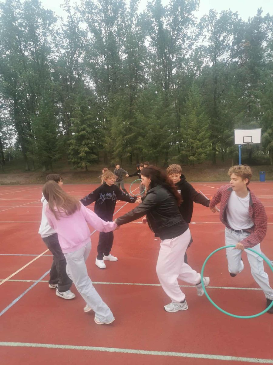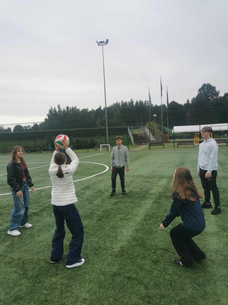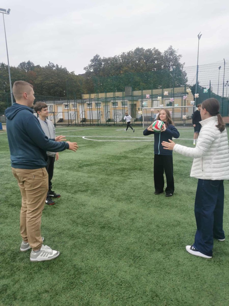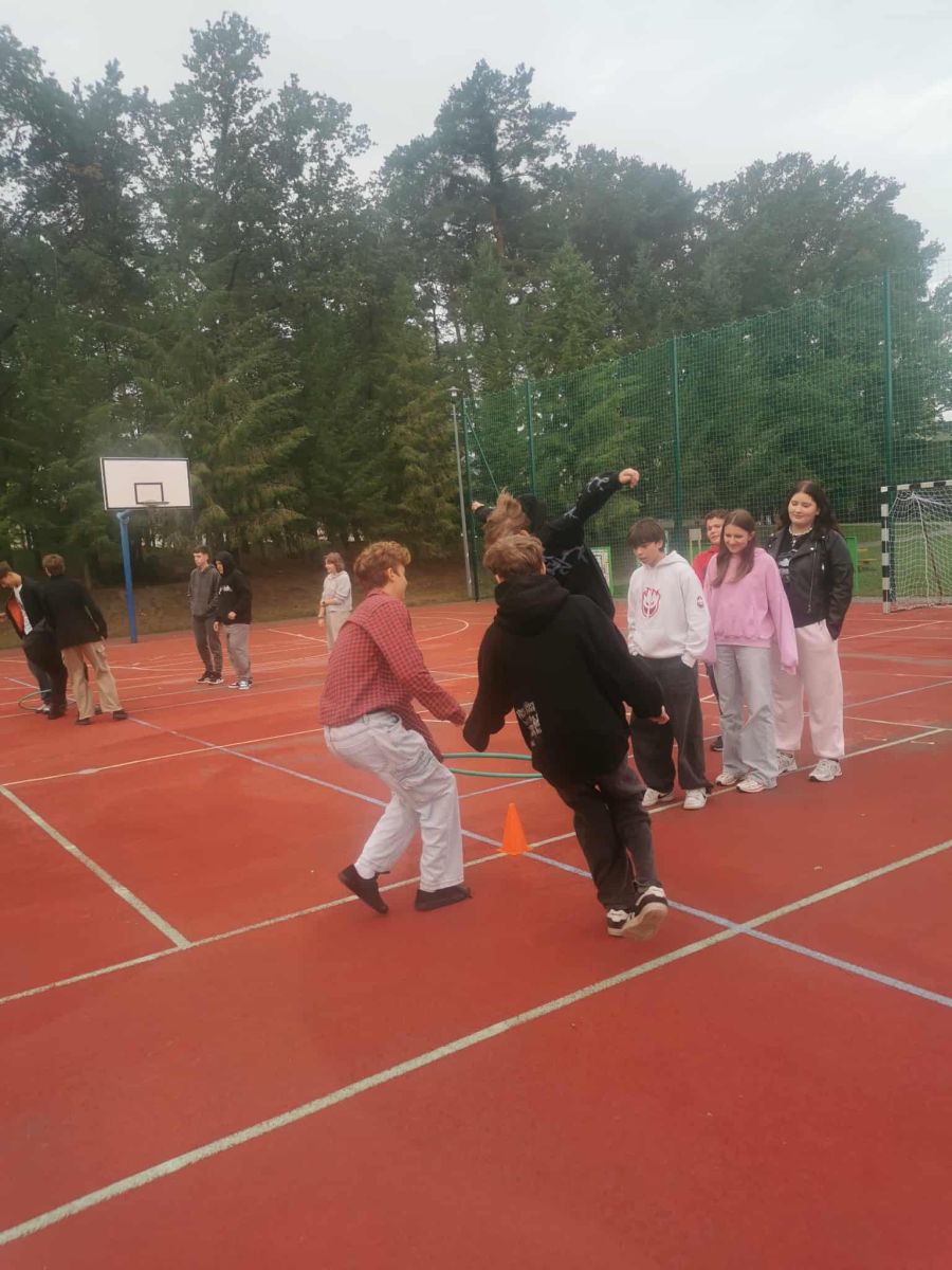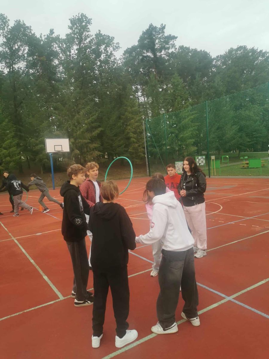 Uczniowie klas ósmych w ramach edukacji zdrowotnej rozpoczęli dzień od aktywności fizycznej na dworze. Nie zabrakło gier i zabaw ruchowych, które dostarczyły mnóstwo radości i pozytywnej energii.