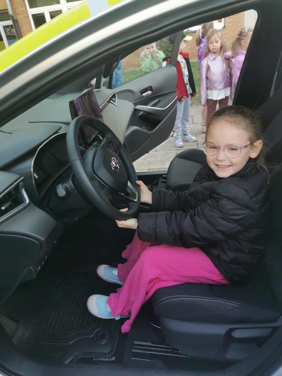W czwartek 25 września naszych najmłodszych – przedszkolaków i pierwszoklasistów – odwiedził wyjątkowy gość: pani policjantka. Opowiedziała dzieciom o swojej pracy, zasadach bezpieczeństwa oraz odpowiedziała na wiele ciekawych pytań. Największą atrakcją okazała się możliwość zajęcia miejsca za kierownicą prawdziwego radiowozu – choć na chwilę każdy mógł poczuć się jak prawdziwy policjant!