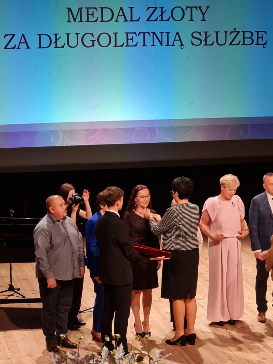 - Pani Beata Misiura – Złoty Medal za Długoletnią Służbę (30 lat pracy) – za niezwykłe zaangażowanie, empatię i niezmienną gotowość do wspierania uczniów w ich codziennych wyzwaniach. Pani Beata od lat z oddaniem inspiruje dzieci do odkrywania swoich talentów i wiary w siebie.