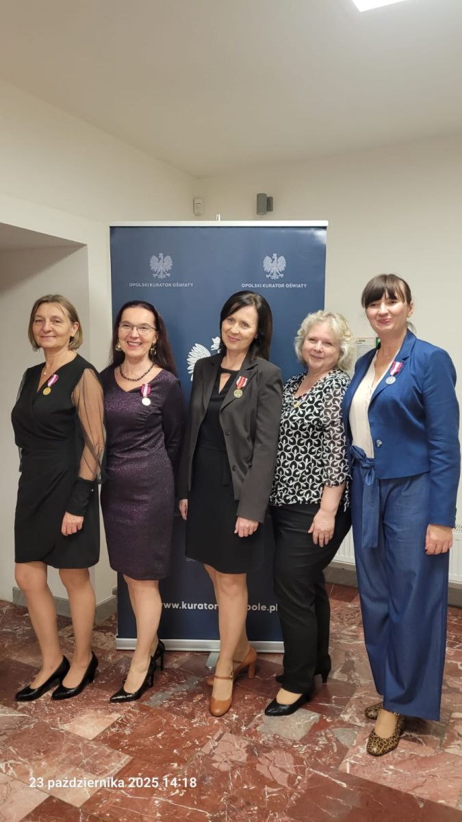 Medale za Długoletnią Służbę w imieniu Prezydenta RP Karola Nawrockiego wręczyła Pani Monika Jurek - Wojewoda Opolski, a Medale Komisji Edukacji Narodowej – w imieniu Minister Edukacji Narodowej, Pani Barbary Nowackiej – przekazała Pani Joanna Raźniewska - Opolski Kurator Oświaty.